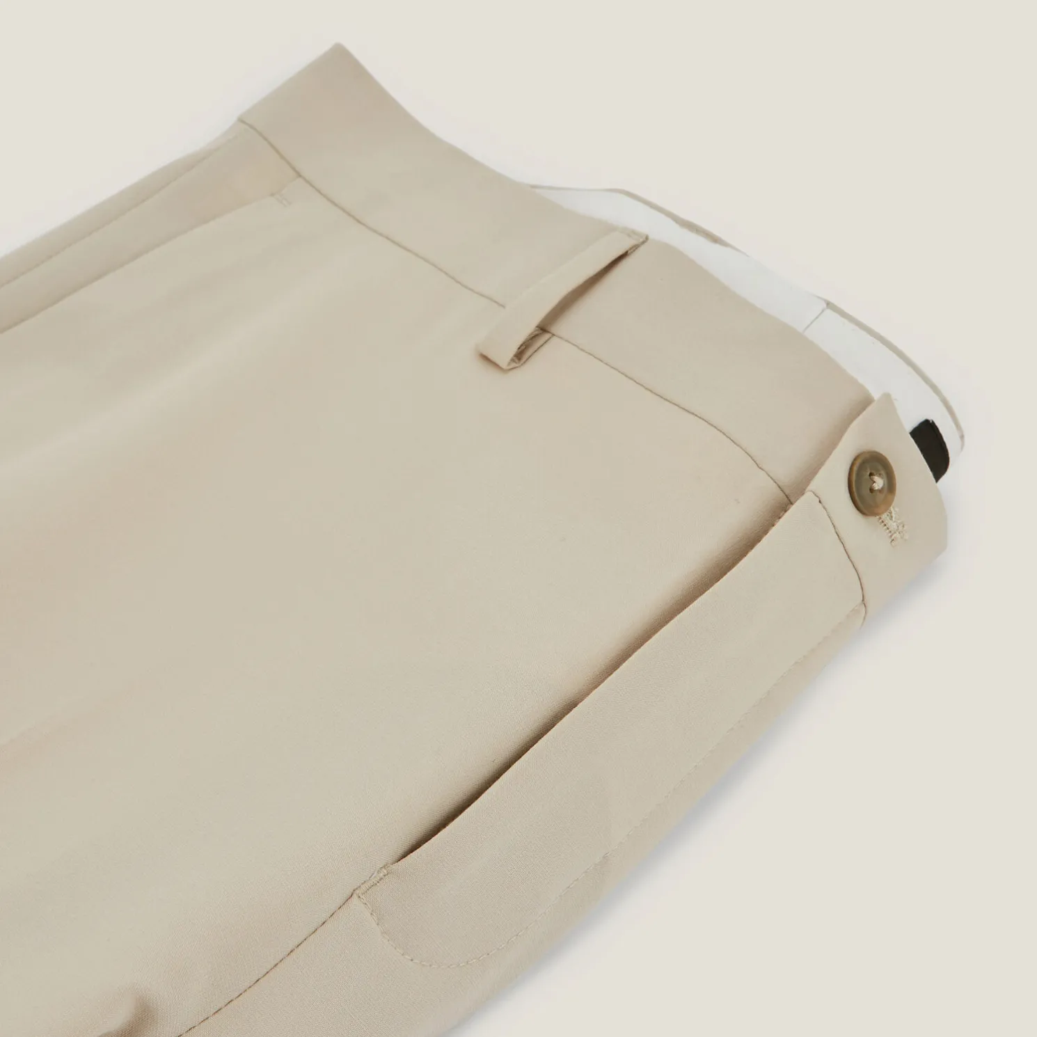 Deze kostuumbroek met goed zittende snit en rechtere pijpuiteinden dan de slim snit past perfect onder een hemd of polo.