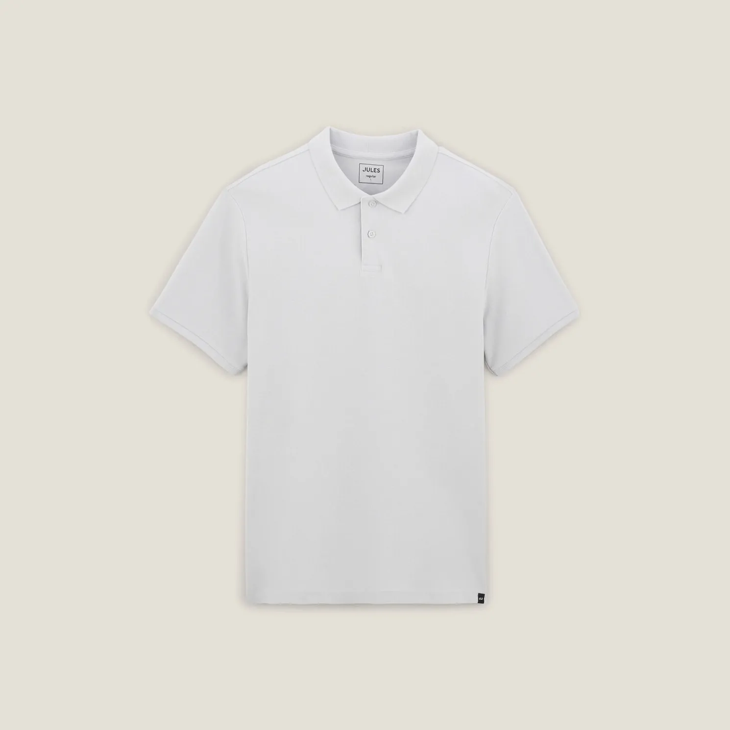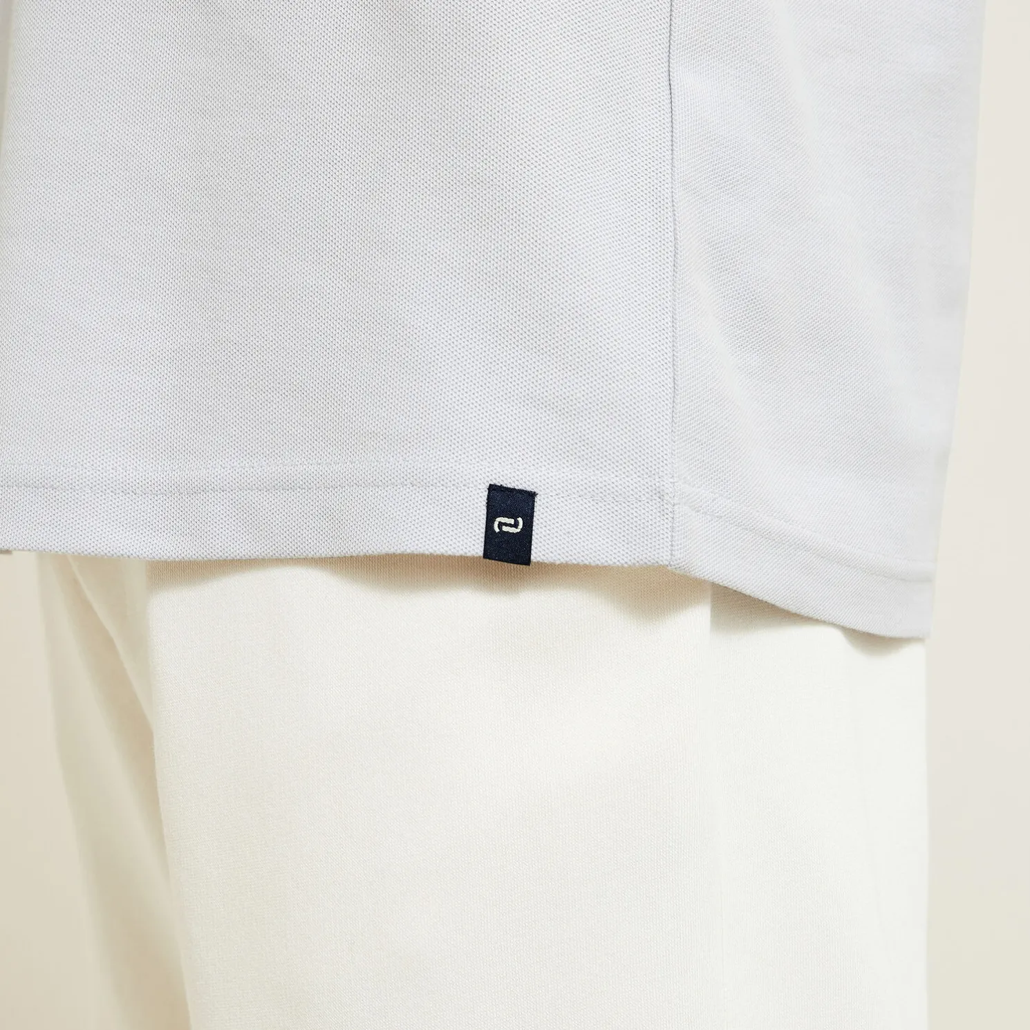 - Contrasterend etiket met het logo onderaan de polo