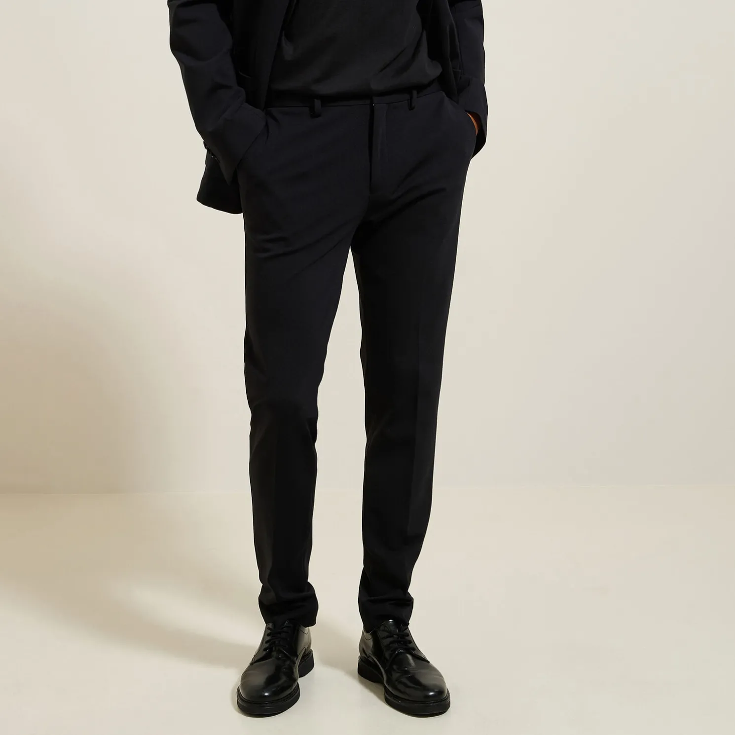 Het pakket slim kostuum in tricot – Zwart
