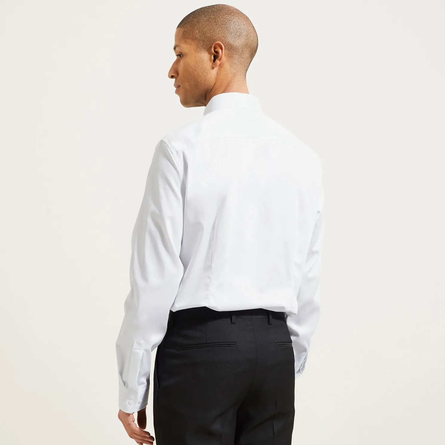 - Klassieke kraag met geperste bovenkant (de kraag is verstevigd met een thermoklevende band voor een onberispelijk vormbehoud)