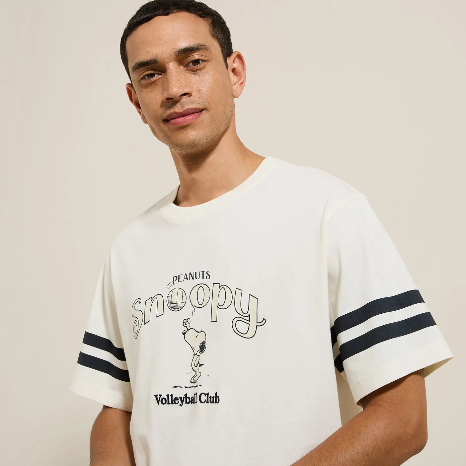 Dit T-shirt met Snoopy Volleyball Club-print, ideaal voor de komst van de mooie dagen, geeft je outfit een casual touch. Hij past op een jeans, een chino of zelfs een bermuda, zoals je ook maar wil!