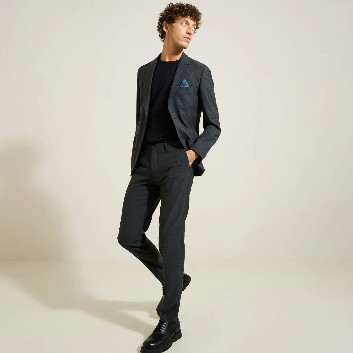 Het model meet 1m86 en draagt maat 40.